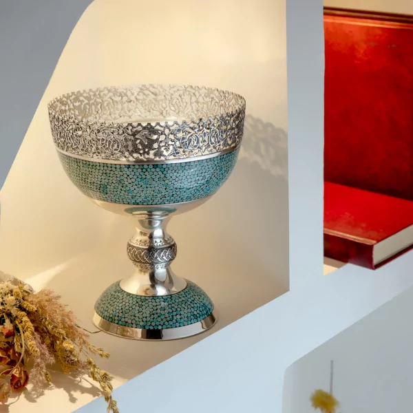 بفضل الله، وبخبرة عميقة وإبداع متجذر في التراث الإيراني العريق، وخاصةً في حرفة أصفهان، نفخر بتقديم مجموعة فريدة من منتجات الفيروز والنحاس والفضة وخاتم كاري المصنوعة يدويًا. وحرصًا منا على الجودة ورضا عملائنا، نضمن لكم قطع فيروزة كوب بضمان لمدة عشر سنوات، مما يعكس التزامنا بالفن الأصيل وخدمة ما بعد البيع الممتازة. صُممت منتجاتنا للمناسبات الخاصة والديكورات الفاخرة، وتجسد مزيجًا من الأصالة والابتكار الحديث، ونسعى جاهدين لنصبح اسمًا موثوقًا به في جميع أنحاء الشرق الأوسط وخارجه.