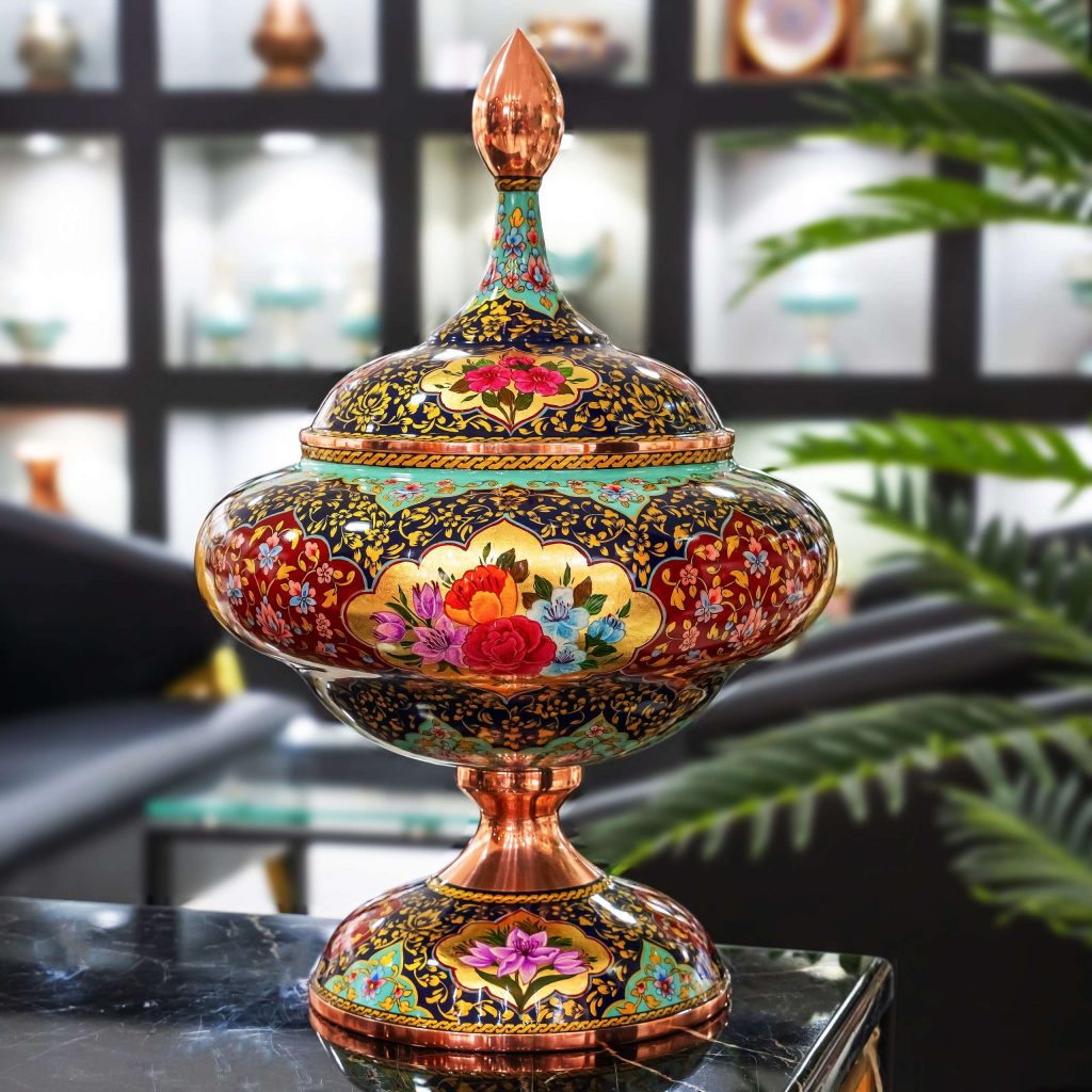 هذه الأواني النحاسية المزخرفة ليست مجرد ديكور منزلي، بل هي تعبير أصيل عن التراث الإيراني، مثالية للإهداء أو لإضفاء لمسة من الأناقة الخالدة على ديكور منزلك.